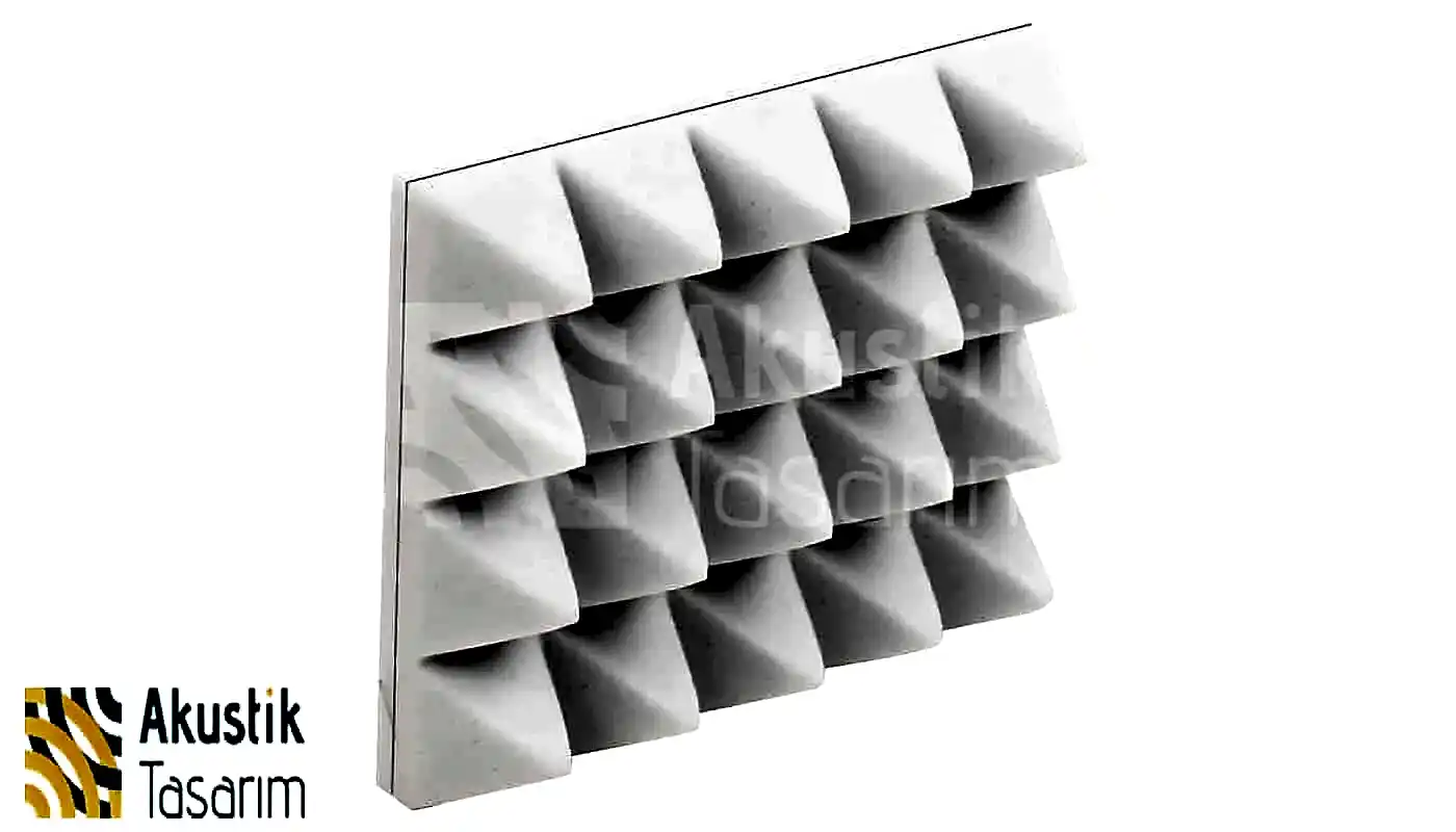 Piramit formun asıl etkisi, ses dalgalarının yüzeyde kırılmasını sağlayarak eko (yankı) oluşumunu sıfıra indirmektir. Düz bir yüzeye göre yüzey alanının genişlemiş olması, emilim performansını (absorption) %40 oranında artırır. Bu formun estetiğini ve performansını daha şık bir bitişle tamamlamak isterseniz, oda girişlerinde Ses Yalıtımlı Kapı çözümleriyle sünger uygulamasını destekleyerek ses sızıntılarını tamamen kesebilirsiniz.